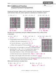 8-3 Additional Practice Quadratic Functions In Standard Form