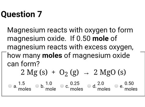 3g of mg requires = 2g of oxygen. So, 24g of mg requires =. If 10.57 g of magnesium reacts completely with 6.96 g of oxygen, what is the percent by mass of oxygen in magnesium oxide?. Which is not true of this reaction? Web detailed solution download solution pdf concept when magnesium is heated it reacts with oxygen vigorously producing light and heat. After it burns, it forms a white powder of the magnesium oxide. 2mg (s) + o 2 (g) → 2mgo (s) expert solution trending now this is a popular solution! Electronegative values are based how strongly an element can pull electron density towards it and electropostive values are based on how likely the element is to let electron density go. How many moles are in 80.5g of aluminum sulfide? Oxygen is a diatomic molecule and is almost always reacting with elements as a gas, o2.