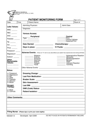 Patient'S Monitoring Form printable pdf download